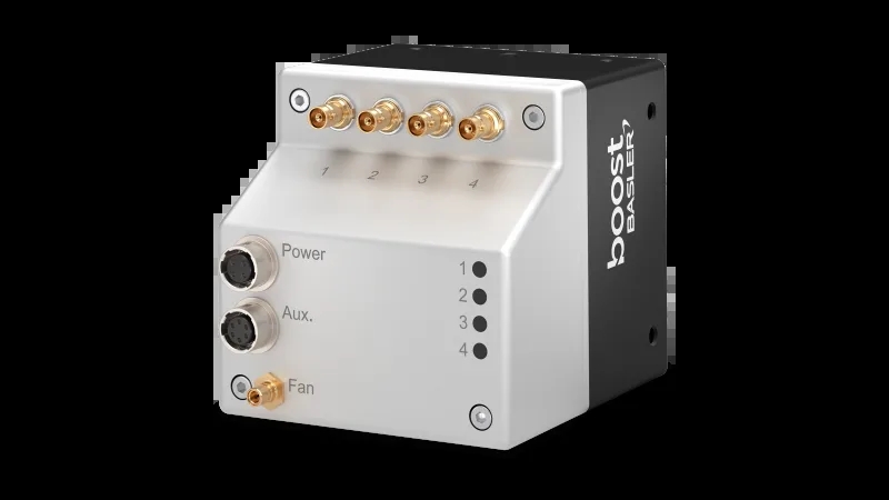 BASLER 巴斯勒 Basler boost boA5120-150cm 面阵相机 常规信息 系统设计样本 now 量产 now 项目编号 2200001210 产品系列 boost V 相机类别 面阵相机 Sensor 感光芯片供应商 Gpixel 感光芯片 GMAX0505 快门 Global Shutter 芯片尺寸 1.1" 芯片尺寸 18.1 mm 芯片类型 CMOS 芯片尺寸 12.8 mm × 12.8 mm 分辨率(长x宽) 5120 px × 5120 px 分辨率 25 MP 像素尺寸(长x宽) 2.5 μm × 2.5 μm 帧速率 150 fps 黑白/彩色 Mono 光谱 Visible Camera Data 接口 CoaXPress (CXP-12) 图像数据接口 CoaXPress (2.5–12.5 Gbps) 像素位深 8 bits 10 bits 同步 hardware trigger software trigger 数字输出 1 通用I/O 1 电源 PoCXP or 24 VDC 电源要求(典型值) 12 W Housing 外壳类型 Box 外壳尺寸(长x宽x高) 71 mm x 65 mm x 65 mm 重量 400 g 操作温度 max 70 °C &nb...