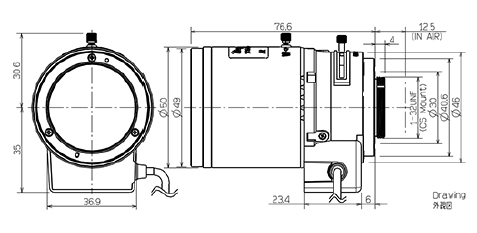TAMRON   腾龙   M13VG550IR  工业镜头   产品规格 型号 M13VG550IR 成像器大小 1/3 接口 CS 焦距 5~50mm 光圈范围 F/1.6~360 视角(水平x垂直) 1/3型 Wide 53°x 40° Tele 5.6°x 4.2° 1/4型 Wide 40°x 30° Tele 4.2°x 3.2° 焦距范围 0.3m~∞(wide) 操作方法 调焦 带有手动锁定 变焦 带有手动锁定 变焦 DC自动光圈 过滤器口径 - 后焦点 Wide 13.71(in air)~Tele 17.87mm(in air) 对应波长 可视光域~近红外域 工作电压 0.5V~4.0V 重量 104g 工作温度范围 -20℃~+60℃ 接线图       手机/微信:18320955412   电话:86 0755 84689265  QQ:2423332841  邮箱:2423332841@qq.com...