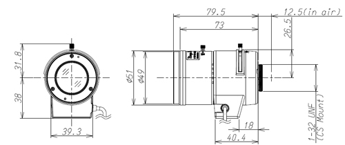 TAMRON 腾龙 M118VG1250IR 工业镜头 产品规格 型号 M118VG1250IR 传感器规格 1/1.8 接口 CS 焦距 12~50mm 光圈范围 F/1.4~360 视角(水平x垂直) 1/1.8型 Wide 34.0°x 25.5° Tele 8.5°x 6.4° 1/2型 Wide 22.9°x 22.4° Tele 7.5°x 5.6° 1/3型 Wide 22.4°x 16.8° Tele 5.6°x 4.2° 对焦范围 1.0m~∞ 操作方法 对焦 手动(带锁定) 变焦 手动(带锁定) 光圈 自动光圈 后焦(in air) 9.62mm(in air) 对应波长 可见光~近红外 工作电压 Open:4.0VClose:0.5V 重量 TBA 工作温度范围 -20℃~+60℃ 手机/微信:18320955412 电话:86 0755 84689265 QQ:2423332841 邮箱:2423332841@qq.com...
