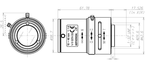 TAMRON 腾龙 12VM1040ASIR 工业镜头 产品规格 12VM1040ASIR 成像器大小 1/2 交换镜头座 C 焦距 10~40mm 光圈范围 1.4~Close 视场角(水平x垂直) 1/2型 Wide 37.5°x27.5° Tele 9.2°x7.0° 1/3型 Wide 27.5°x20.4° Tele 7.0°x5.2° 焦距范围 0.5m~∞ 操作方法 焦点 手动 (带锁定结构) 变焦 手动 (带锁定结构) 光圈 手动 (带锁定结构) 过滤器口径 - 后焦点 (in air) Wide 12.376~Tele 18.812mm 工作电压 - 质量 77g 工作温度范围 -20℃~+60℃ 手机/微信:18320955412 电话:86 0755 84689265 QQ:2423332841 邮箱:2423332841@qq.com...