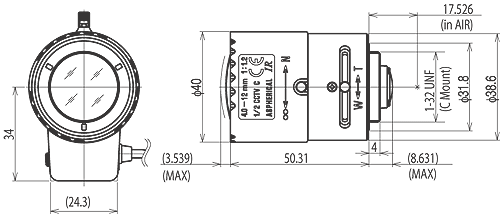 TAMRON 腾龙 12VA412ASIR 工业镜头 产品规格 12VA412ASIR 成像器大小 1/2 交换镜头座 C 焦距 4.0~12mm 光圈范围 1.2~360 视场角(水平x垂直) 1/2型 Wide 93.7°x68.9° Tele 31.2°x23.4° 1/3型 Wide 68.9°x51.1° Tele 23.4°x17.5° 焦距范围 0.3m~∞ 操作方法 焦点 手动 (带锁定结构) 变焦 手动 (带锁定结构) 光圈 自动光圈(Video) 过滤器口径 - 后焦点 (in air) Wide 10.157~Tele 19.911mm 工作电压 DC8.5~16V(50mA) 质量 72g 工作温度范围 -10℃~+50℃ 配线图 手机/微信:18320955412 电话:86 0755 84689265 QQ:2423332841 邮箱:2423332841@qq.com...