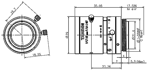TAMRON 腾龙 M117FM25 工业镜头 产品规格 型号 M117FM25 传感器尺寸 1/1.7 卡口 C 焦距 25mm 光圈范围 2.4~16 视角(水平x垂直) 1/1.7 17.4°x13.1° 1/1.8 17.1°x11.5° 1/2 14.8°x11.2° 1/3 11.2°x8.4° 对焦范围 0.1m~∞ 操作方法 对焦 手动(带锁定) 光圈 手动(带锁定) 滤镜螺纹口径 M27 P=0.5mm 对应波长 可见光 畸变 -0.1%(设计值) 重量 45g 工作温度范围 -20℃~+60℃ 手机/微信:18320955412 电话:86 0755 84689265 QQ:2423332841 邮箱:2423332841@qq.com...