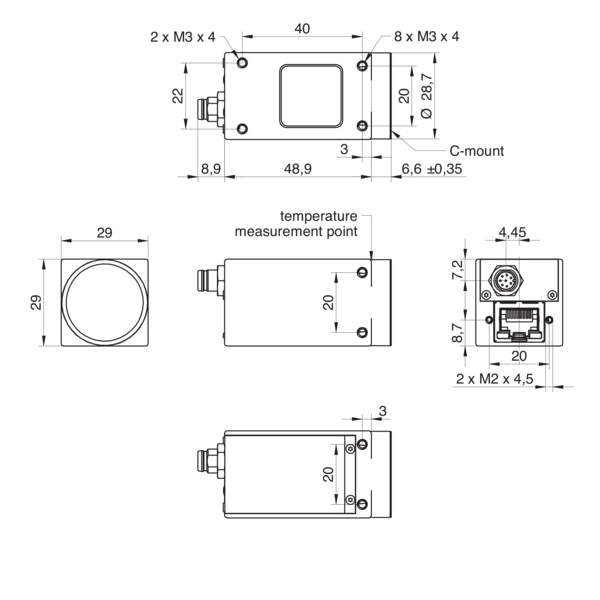 - Approx. 3.5 W @ 48 VDC (PoE) and 10 fps