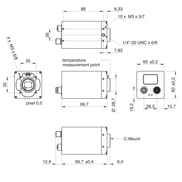 BAUMER 堡盟 VLXT-06M.I.JP 工业相机 传感器基本信息 传感器 Sony IMX426 Gen3 Mono/Color 黑白 传感器类型 1/1.7" CMOS 快门类型 全局快门 分辨率 800 × 620 px 像元尺寸 9 × 9 µm 曝光时间 0,001 … 60000 ms Dark noise 21,66 e- Saturation capacity 99279 e- Dynamic range 72,6 dB Signal-to-noise ratio 50 dB Quantum efficiency 73,2 % @ 536 nm 73,1 % @ 533 nm 采集格式 图像格式,最高接口帧率 全帧,800 × 620 px,最高1609 fps 像素合并 2×2,400 × 310 px,最高1609 fps 像素合并 2×1,400 × 620 px,最高1609 fps 像素合并 1×2,800 × 310 px,最高1609 fps 图像格式,最高采集帧率(Burst模式) 全帧,800 × 620 px,最高1609 fps 像素格式 Mono8 Mono10 Mono12 Mono12 Packed 图像预处理 模拟量控制 增益 (0…48 dB) 偏移 (0…255 LSB 12位) 彩色型号 黑白 图像处理...