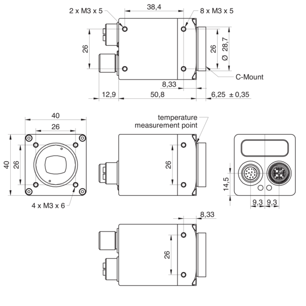 - Integrated color correction matrix (3000 K, 5000 K, 6500 K, 9500 K, and user defined)