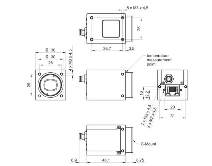 BAUMER 堡盟 VCXG.2-51M.XC 工业相机 传感器基本信息 传感器 Sony IMX264 Gen2 Mono/Color 黑白 传感器类型 2/3" CMOS 快门类型 全局快门 分辨率 2448 × 2048 px 像元尺寸 3.45 × 3.45 µm 曝光时间 0,001 … 60000 ms Dark noise 2,02 e- Saturation capacity 9344 e- Dynamic range 70,8 dB Signal-to-noise ratio 39,7 dB Quantum efficiency 64,3 % @ 535 nm 采集格式 图像格式,最高接口帧率 全帧,2448 × 2048 px,最高24 fps 像素合并 2×2,1224 × 1024 px,最高36 fps 像素合并 2×1,1224 × 2048 px,最高36 fps 像素合并 1×2,2448 × 1024 px,最高36 fps 图像格式,最高采集帧率(Burst模式) 全帧,2448 × 2048 px,最高36 fps 像素格式 Mono8 Mono10 Mono12 Mono12 Packed 图像预处理 模拟量控制 增益 (0…48 dB) 偏移 (0…255 LSB 12位) 彩色型号 黑白 相机功能 Basic ...