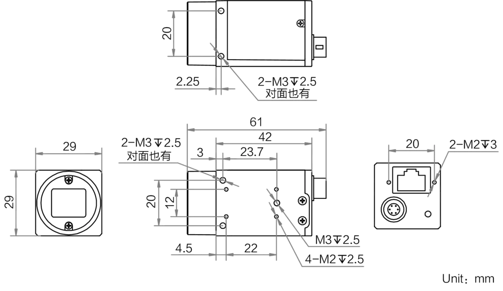 | 快门模式 | 支持自动曝光、手动曝光、一键曝光模式,支持TriggerWidth | |