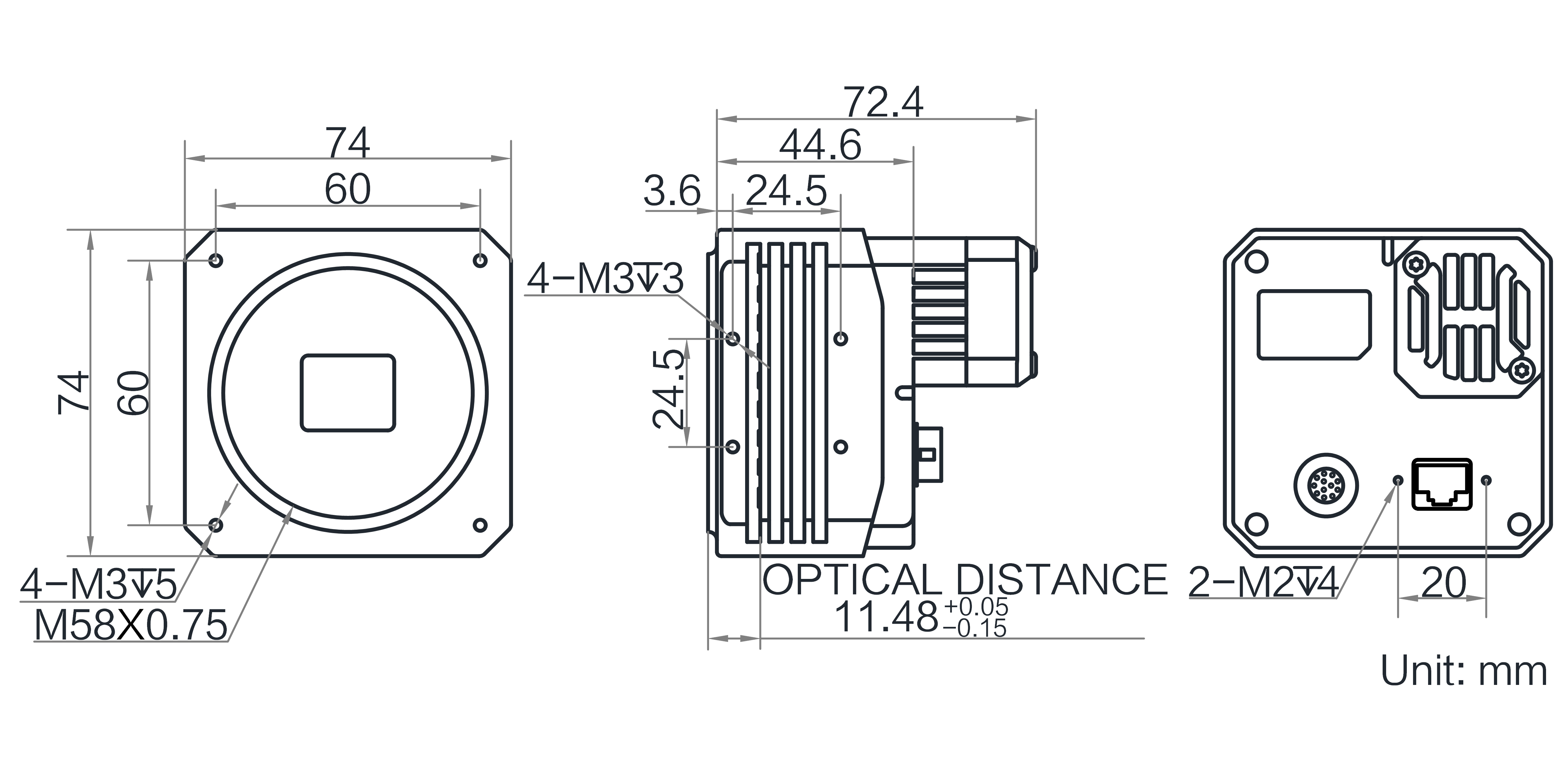 | 结构 | 镜头接口 | M58*0.75,法兰后焦 11.48 mm |