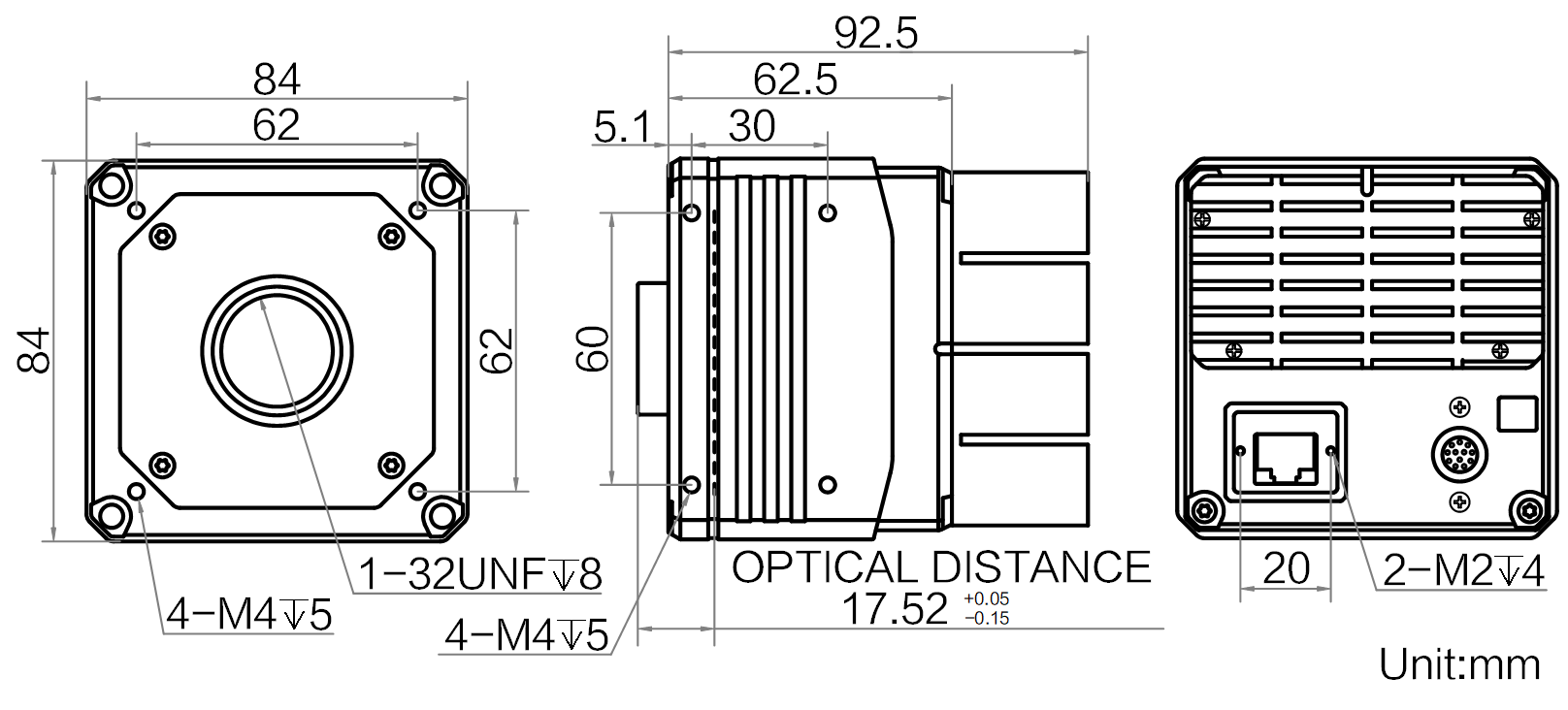 | 结构 | 镜头接口 | C口,法兰后焦17.52 mm |