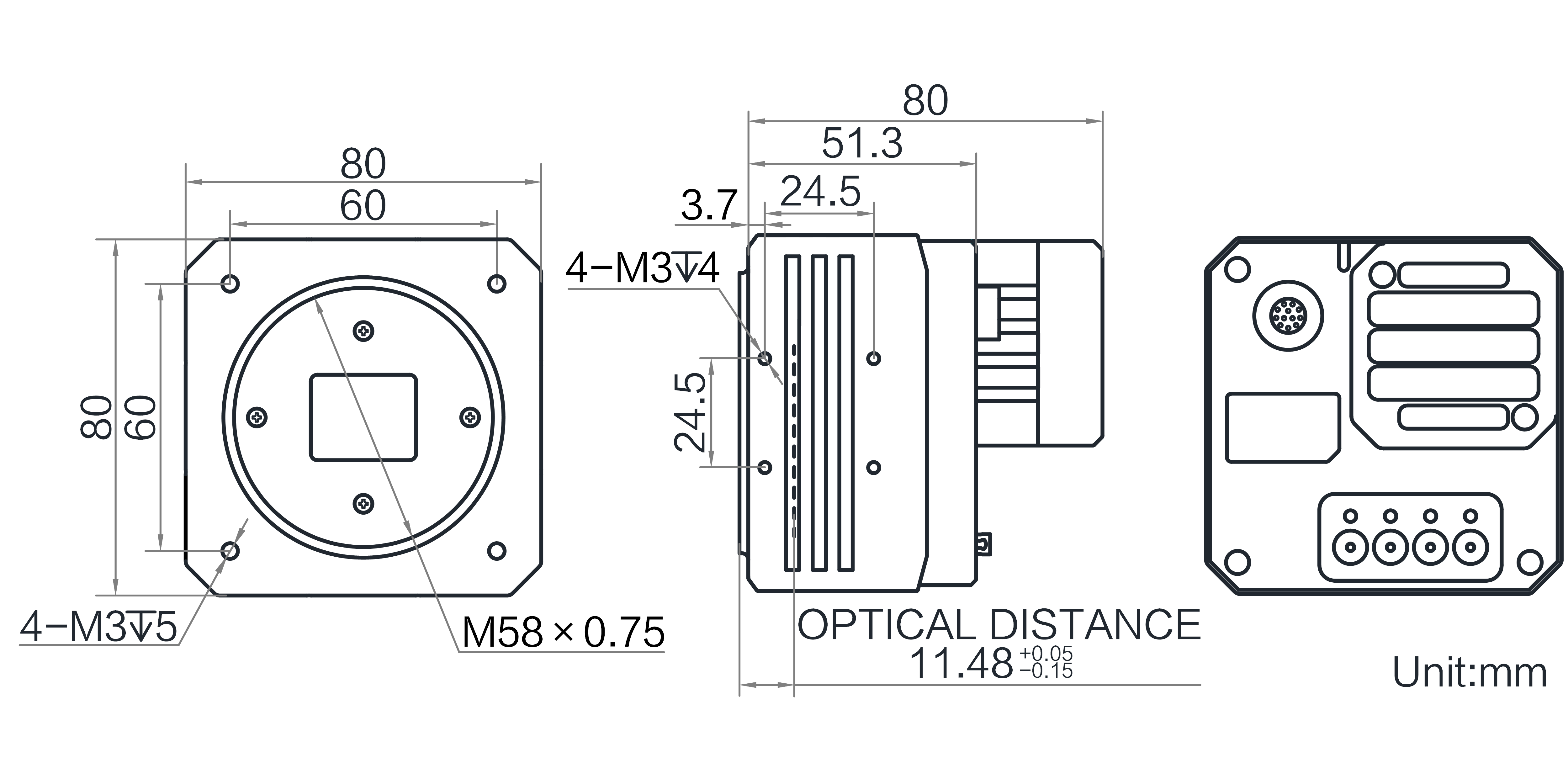 | 结构 | 镜头接口 | M58*0.75,法兰后焦11.48 mm |