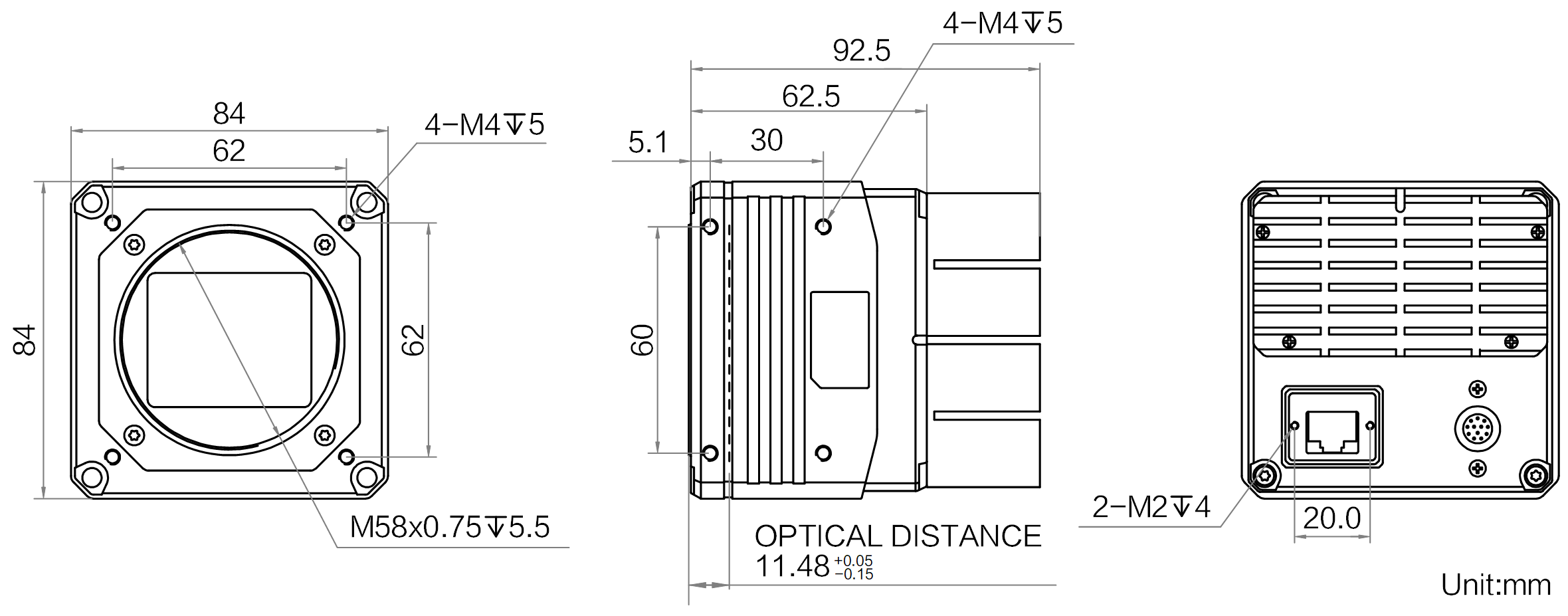 | 结构 | 镜头接口 | M58*0.75,法兰后焦11.48 mm |