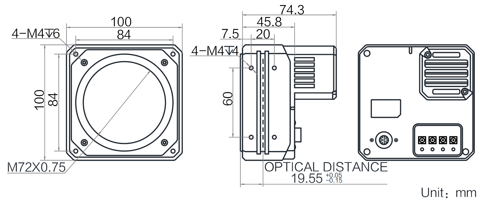 | 结构 | 镜头接口 | M72*0.75 ,光学后焦 19.55 mm |