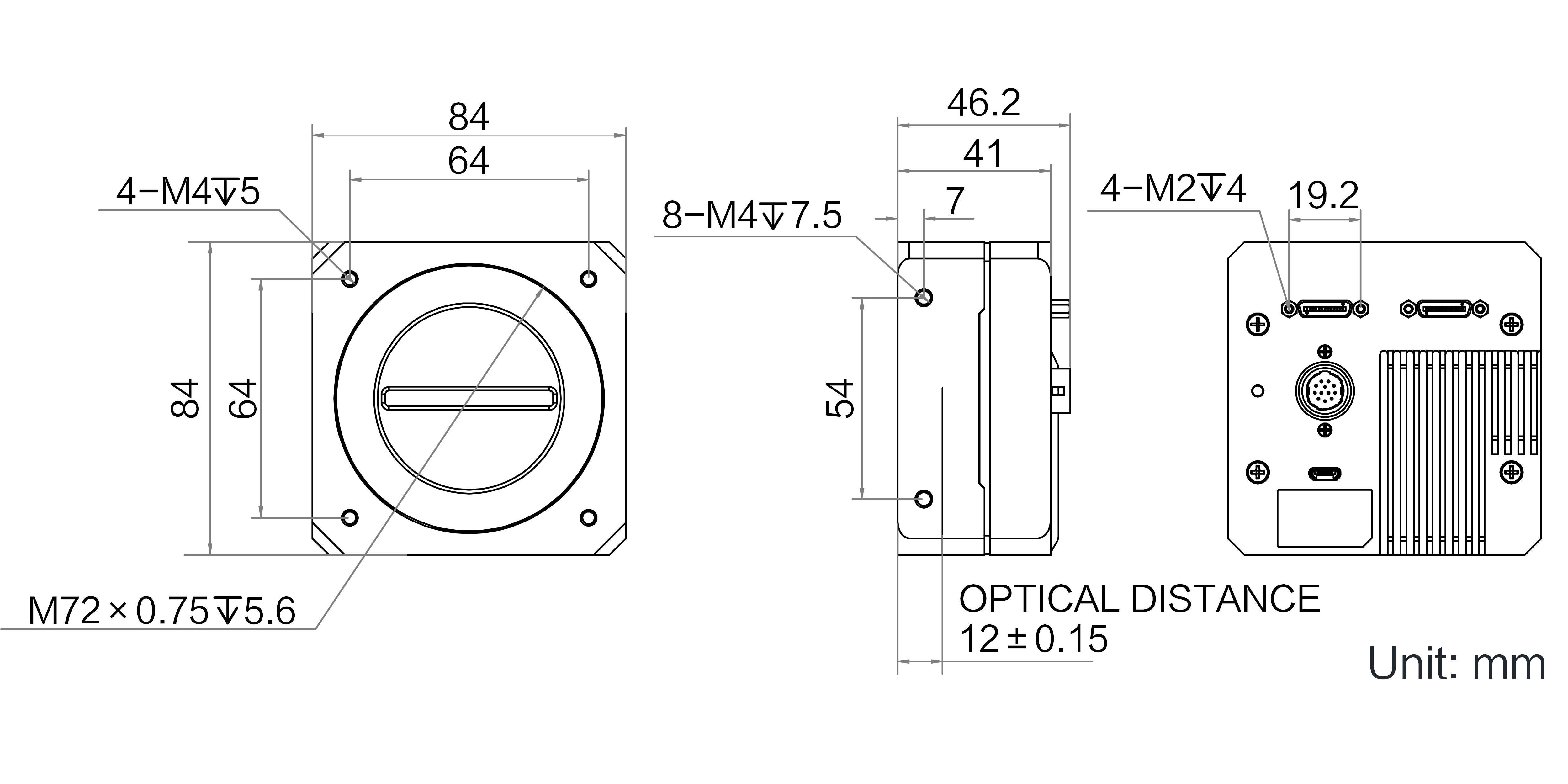 | 结构 | 镜头接口 | M72*0.75,法兰后焦12 mm;可通过转接环转接至F口镜头 |