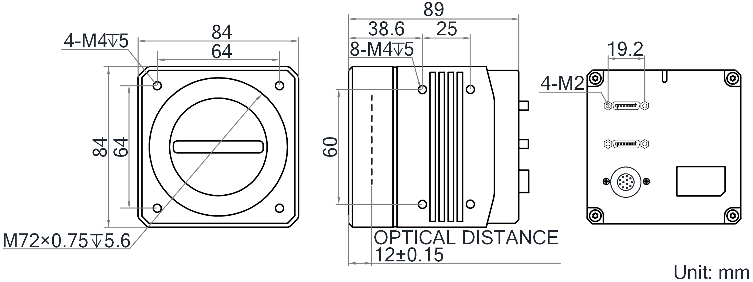 | 结构 | 镜头接口 | M72*0.75,法兰后焦 12 mm;可通过转接环转接至 F口镜头 |
