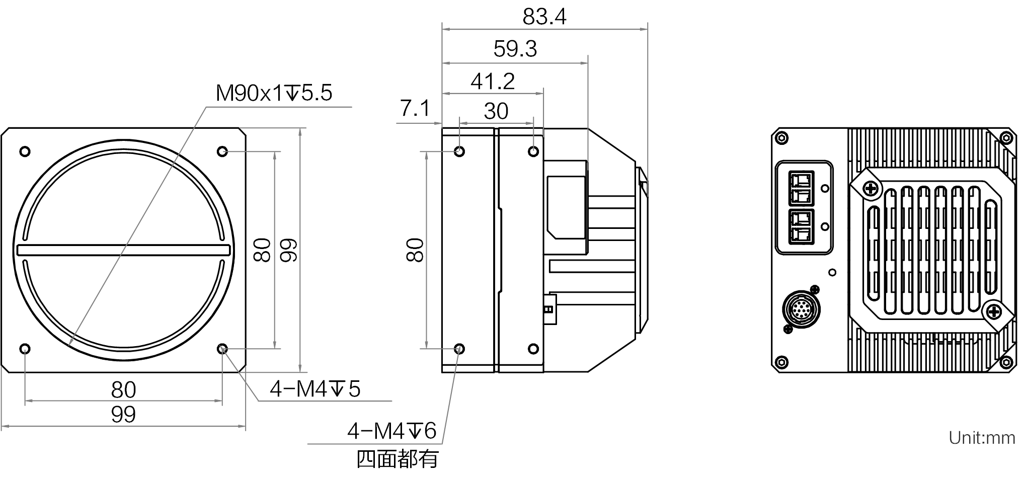 | 结构 | 镜头接口 | M90*1,法兰后焦12 mm;可通过转接环转接至F口镜头 |
