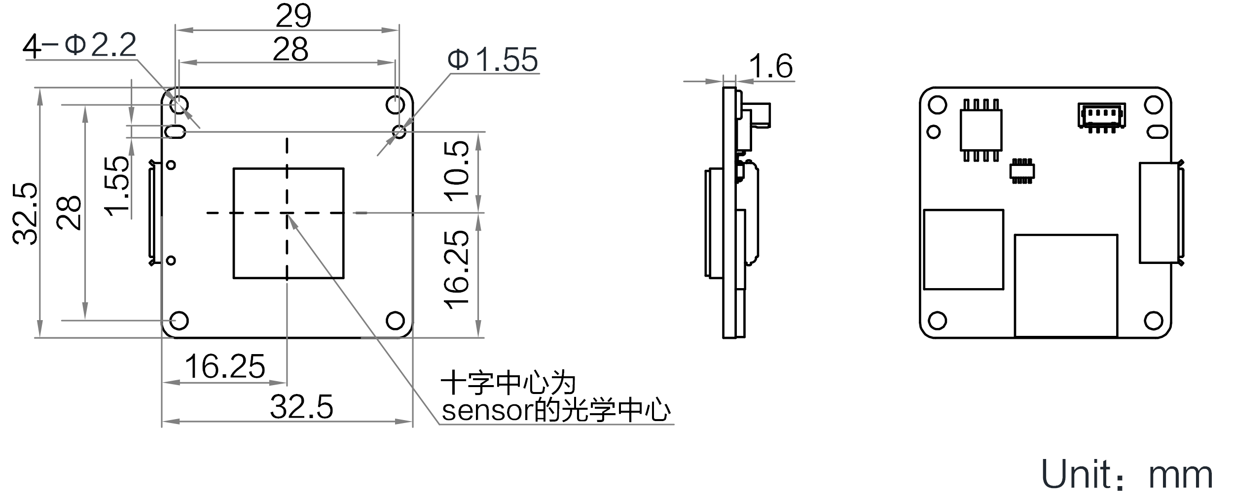 | 外形尺寸 | 32.5 mm×32.5 mm×1.6 mm | |