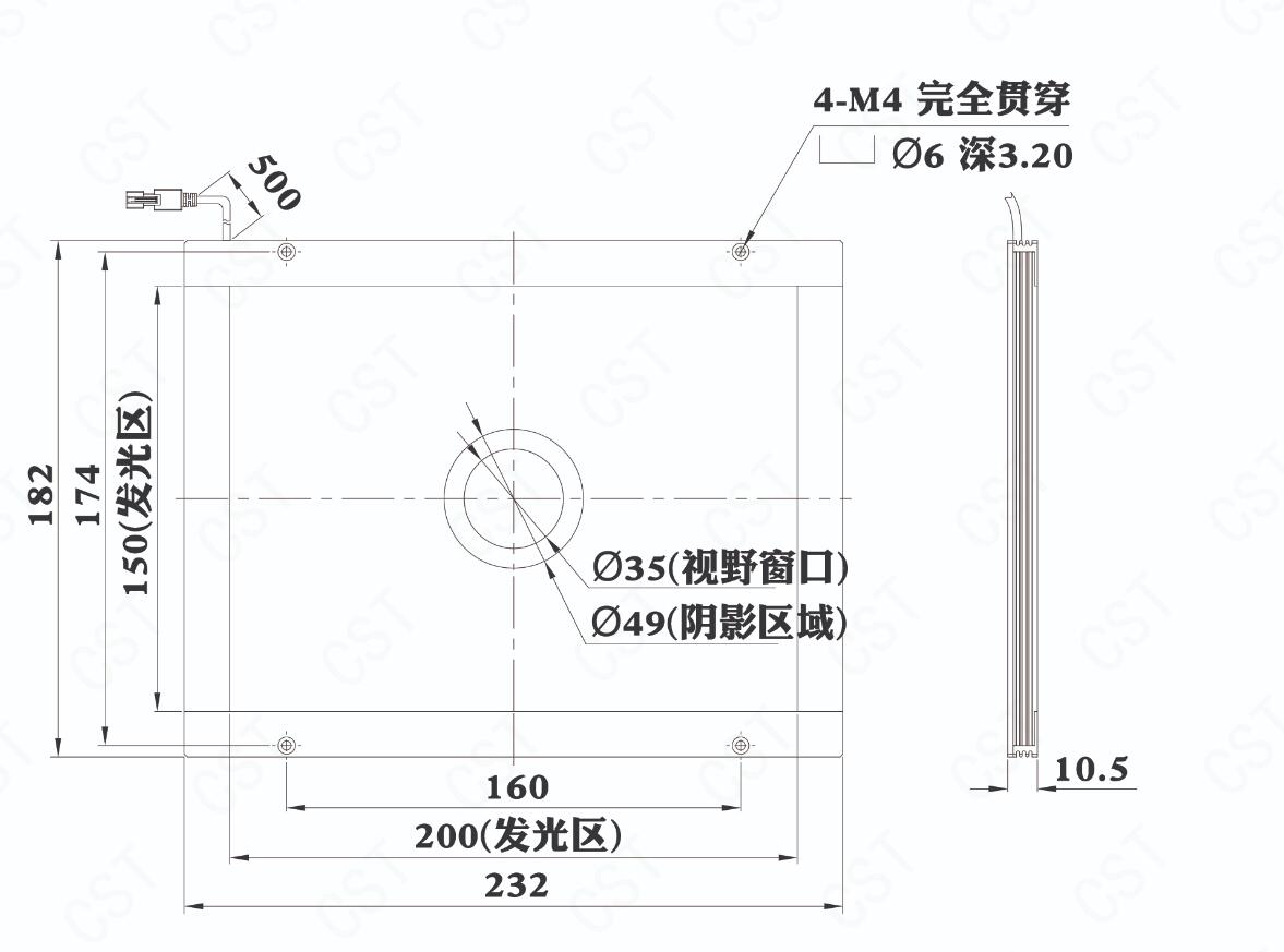 CST 康视达 CST-2KFS200150Y35-R 开孔侧部面光源