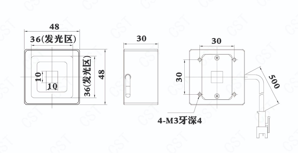 CST 康视达 CST-FQS48-W 方形无形光源 产品型号 CST-FQS48-W 光源颜色 白色 光源功率 2.3W 色温/波长 6000-10000K 保存环境 温度:-20-60℃ 湿度:20-85%RH(非凝结) 使用环境 温度:0-40℃ 使用寿命 环境为25℃时,红色以50%照度连续工作60000小时, 衰减量为50% 环境为25℃时,白色以50%照度连续工作30000小时, 衰减量为50% 品质保证 CST产品自出货日起1年,非人为原因发生故障,免费提供维修或更换服务 手机/微信:18320955412 电话:86 0755 84689265 QQ:2423332841 邮箱:2423332841@qq.com...