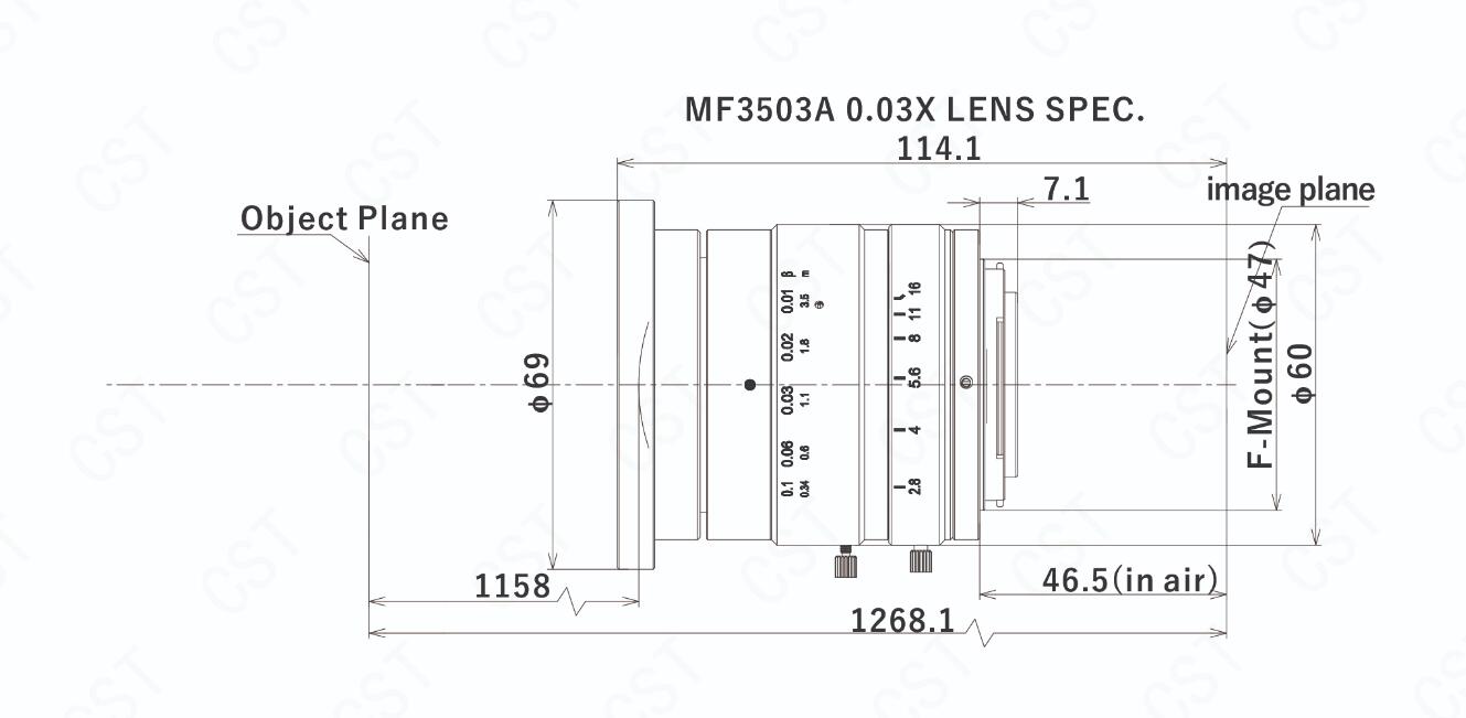 CST 康视达 CST-MF003F35-D45 工业镜头 型号 CST-MF003F35-D45 焦距 35 标准放大倍率 0.03X 最大像面尺寸 φ45 光圈系数 2.8 光学畸变 <0.5% 滤镜螺纹 M67×P0.75 工作距离 1158.7 法兰距离 46.5mm 共轭距 168.8 接口 F-Mount 手机/微信:18320955412 电话:86 0755 84689265 QQ:2423332841 邮箱:2423332841@qq.com