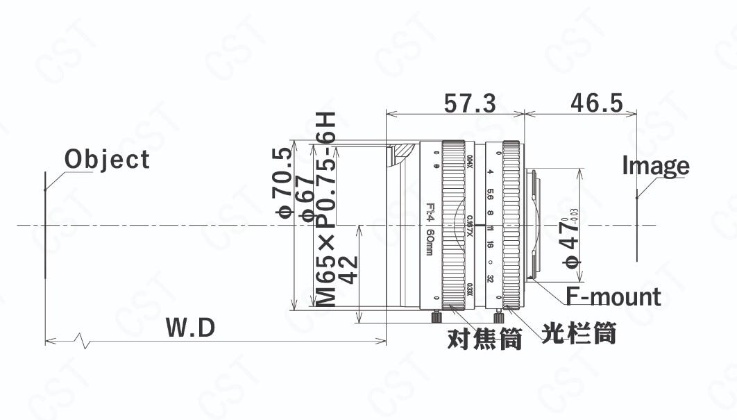 CST 康视达 CST-MF005F90H-D45 工业镜头 型号 CST-MF01F116H-D66 焦距 116 标准放大倍率 0.1X 最大像面尺寸 φ66 光圈系数 4 光学畸变 0.01% 工作距离 985.9 共轭距 1123.5 滤镜螺纹 M67×P0.75 接口 F-Mount 手机/微信:18320955412 电话:86 0755 84689265 QQ:2423332841 邮箱:2423332841@qq.com