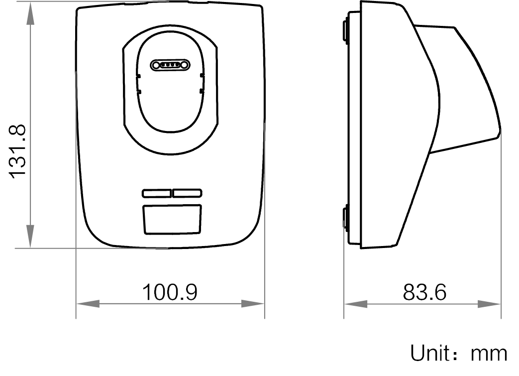 | 外形尺寸 | 读码器:74.4 mm × 86.6 mm × 179.5 mm 底座:100.9 mm × 131.8 mm × 83.6 mm |