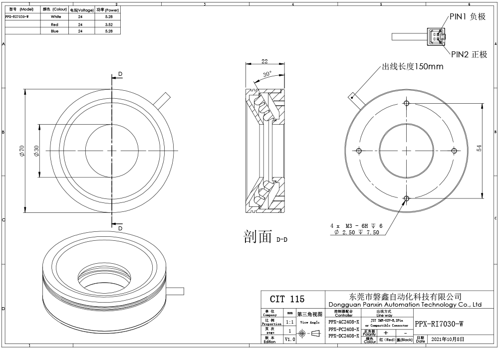 PPX 磐鑫 PPX-RI7030 环形光源 01. 技术指标 02. 选型说明 03. 特殊定制项目 04. 光谱分布 以下皆为实验室数据仅供参考* 05. 可选漫射板 有其他内容请及时咨询* 手机/微信:18320955412 电话:86 0755 84689265 QQ:2423332841 邮箱:2423332841@qq.com