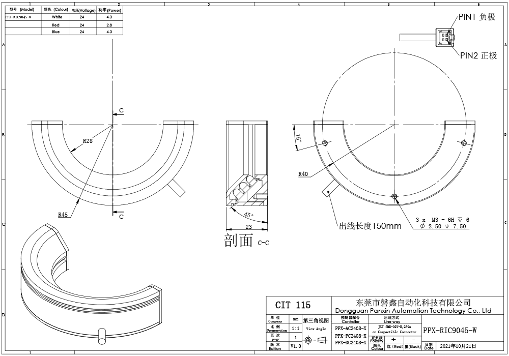 PPX 磐鑫 PPX-RIC9045-W 半圆形光源 01. 技术指标 02. 选型说明 03. 特殊定制项目 04. 光谱分布 手机/微信:18320955412 电话:86 0755 84689265 QQ:2423332841 邮箱:2423332841@qq.com