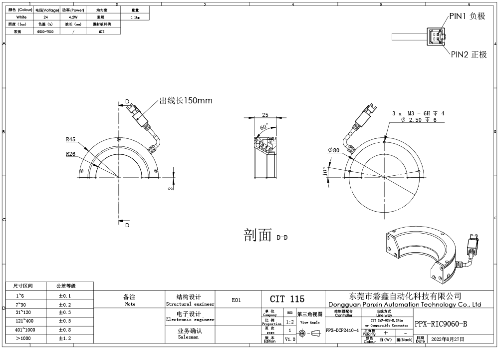 PPX 磐鑫 PPX-RIC9060-W 半圆形光源 01. 技术指标 02. 选型说明 03. 特殊定制项目 04. 光谱分布 手机/微信:18320955412 电话:86 0755 84689265 QQ:2423332841 邮箱:2423332841@qq.com