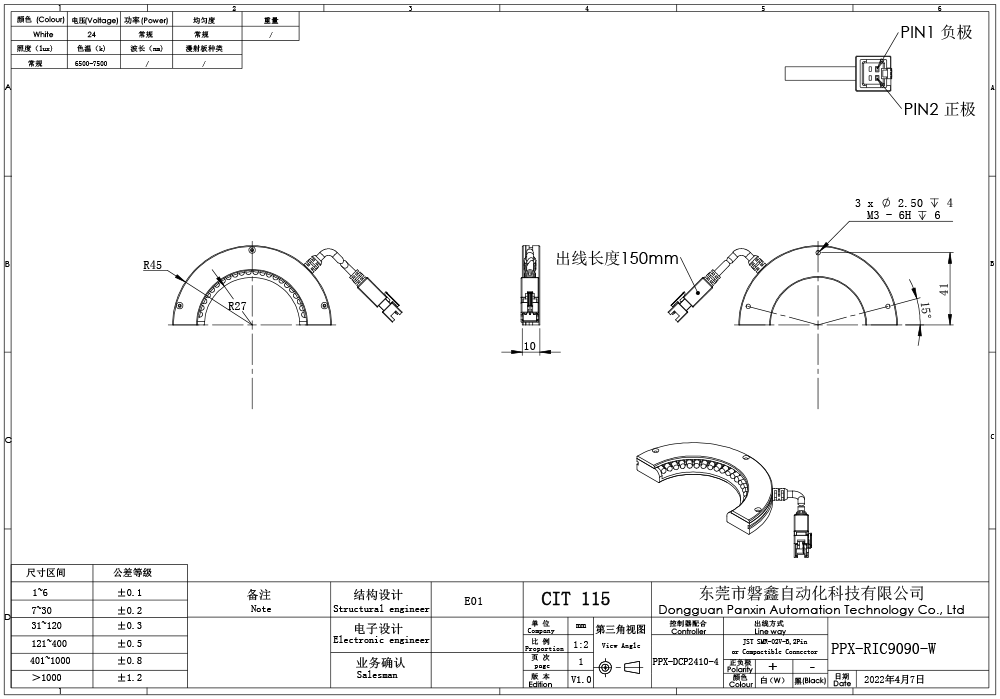 PPX 磐鑫 PPX-RIC9090-W 半圆形光源 01. 技术指标 02. 选型说明 03. 特殊定制项目 手机/微信:18320955412 电话:86 0755 84689265 QQ:2423332841 邮箱:2423332841@qq.com 04. 光谱分布