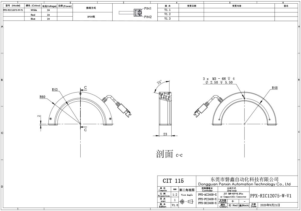 PPX 磐鑫 PPX-RIC12075-W 半圆形光源 01. 技术指标 02. 选型说明 03. 特殊定制项目 04. 光谱分布 手机/微信:18320955412 电话:86 0755 84689265 QQ:2423332841 邮箱:2423332841@qq.com