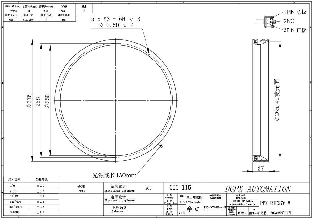 PPX 磐鑫 PPX-RIF276 环形无影光源 01. 技术指标 02. 选型说明 03. 特殊定制项目 04. 光谱分布 以下皆为实验室数据仅供参考* 手机/微信:18320955412 电话:86 0755 84689265 QQ:2423332841 邮箱:2423332841@qq.com