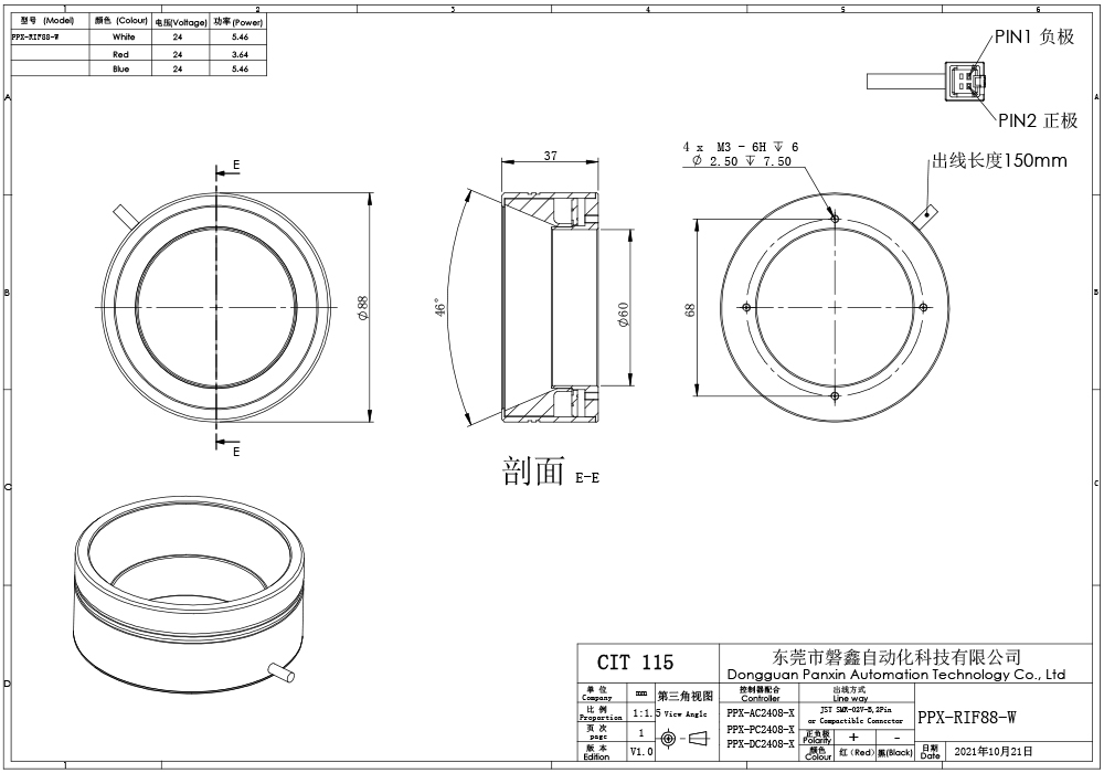 PPX 磐鑫 PPX-RIF88 环形无影光源 01. 技术指标 02. 选型说明 03. 特殊定制项目 04. 光谱分布 以下皆为实验室数据仅供参考* 手机/微信:18320955412 电话:86 0755 84689265 QQ:2423332841 邮箱:2423332841@qq.com