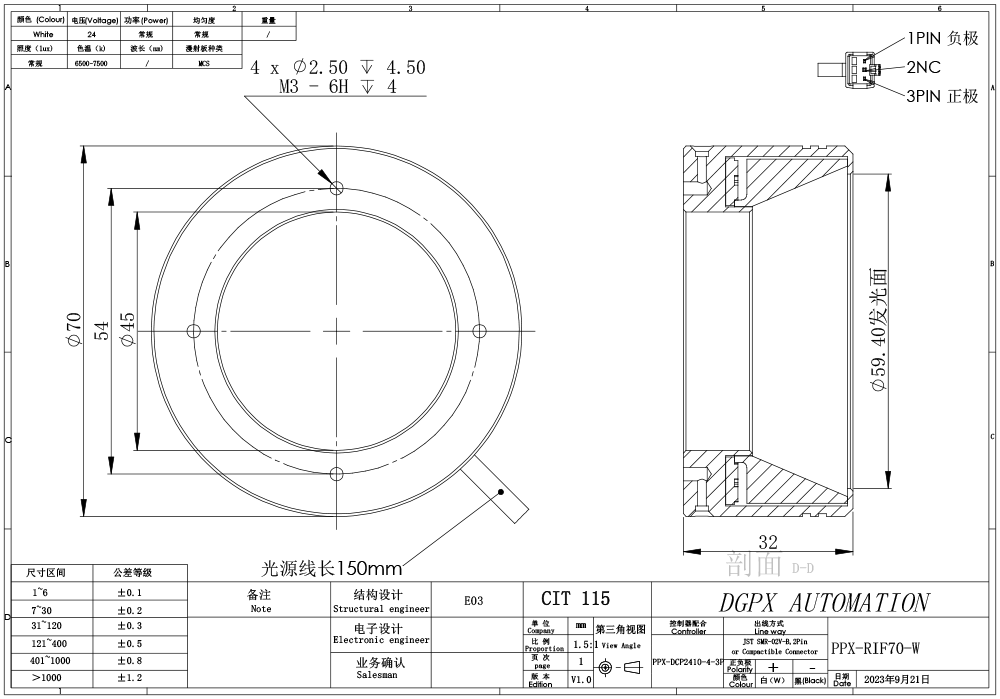 PPX 磐鑫 PPX-RIF70 环形无影光源 01. 技术指标 02. 选型说明 03. 特殊定制项目 04. 光谱分布 以下皆为实验室数据仅供参考* 手机/微信:18320955412 电话:86 0755 84689265 QQ:2423332841 邮箱:2423332841@qq.com