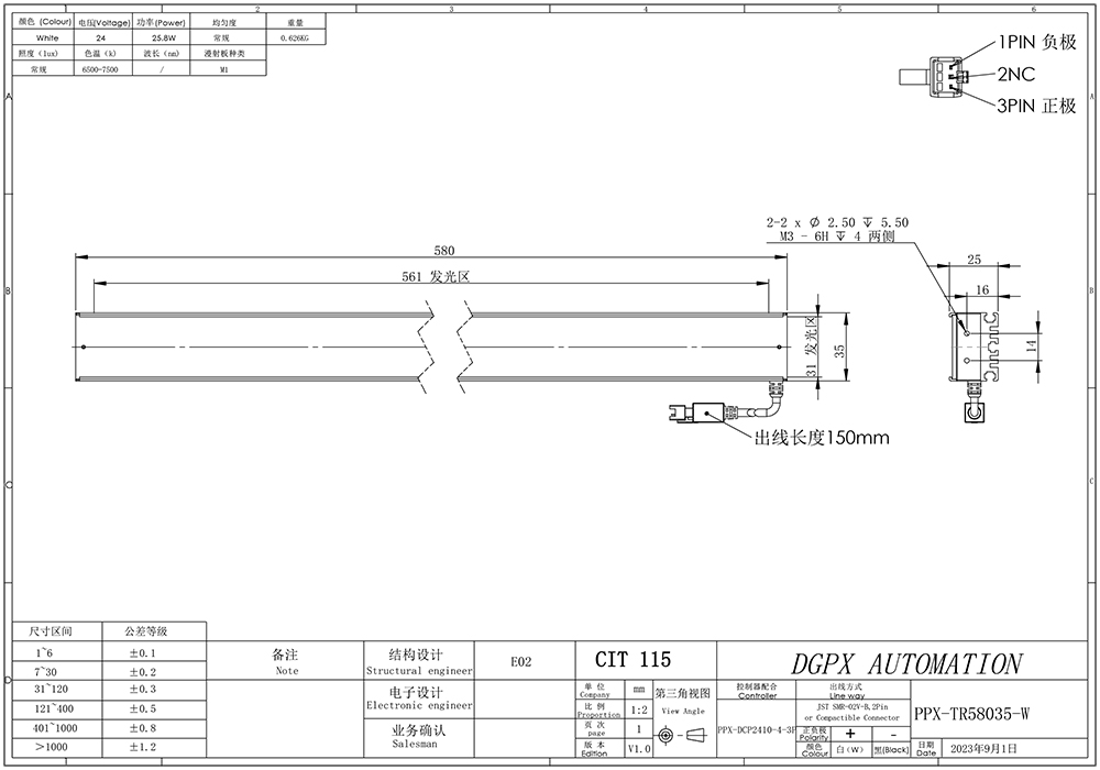 PPX 磐鑫 PPX-TR58035 条形光源 01. 技术指标 02. 选型说明 03. 特殊定制项目 04. 光谱分布 以下皆为实验室数据仅供参考* 手机/微信:18320955412 电话:86 0755 84689265 QQ:2423332841 邮箱:2423332841@qq.com