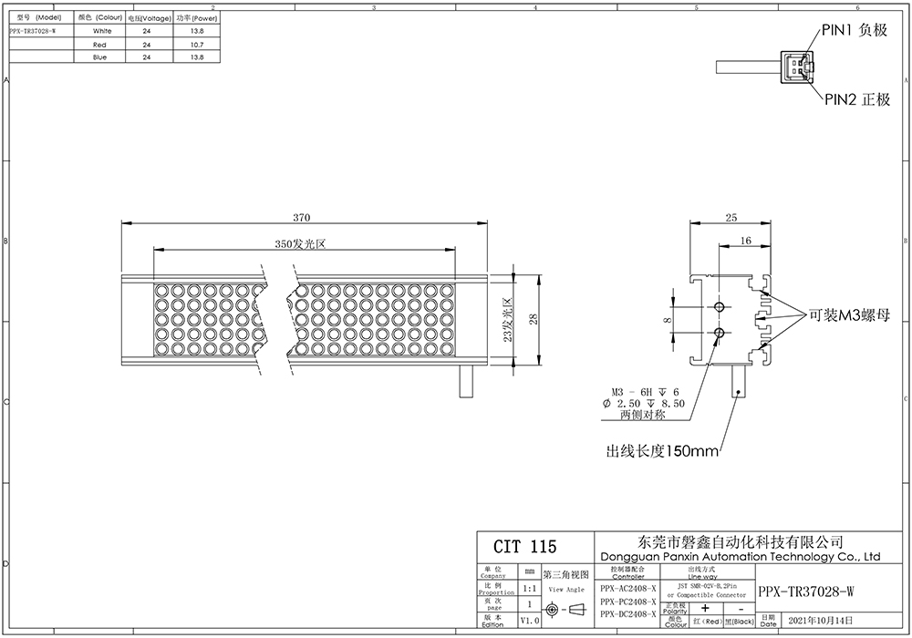 PPX 磐鑫 PPX-TR37028 条形光源 01. 技术指标 02. 选型说明 03. 特殊定制项目 04. 光谱分布 以下皆为实验室数据仅供参考* 手机/微信:18320955412 电话:86 0755 84689265 QQ:2423332841 邮箱:2423332841@qq.com