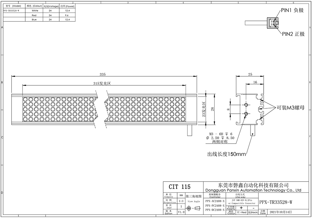 PPX 磐鑫 PPX-TR33528 条形光源 01. 技术指标 02. 选型说明 03. 特殊定制项目 04. 光谱分布 以下皆为实验室数据仅供参考* 手机/微信:18320955412 电话:86 0755 84689265 QQ:2423332841 邮箱:2423332841@qq.com