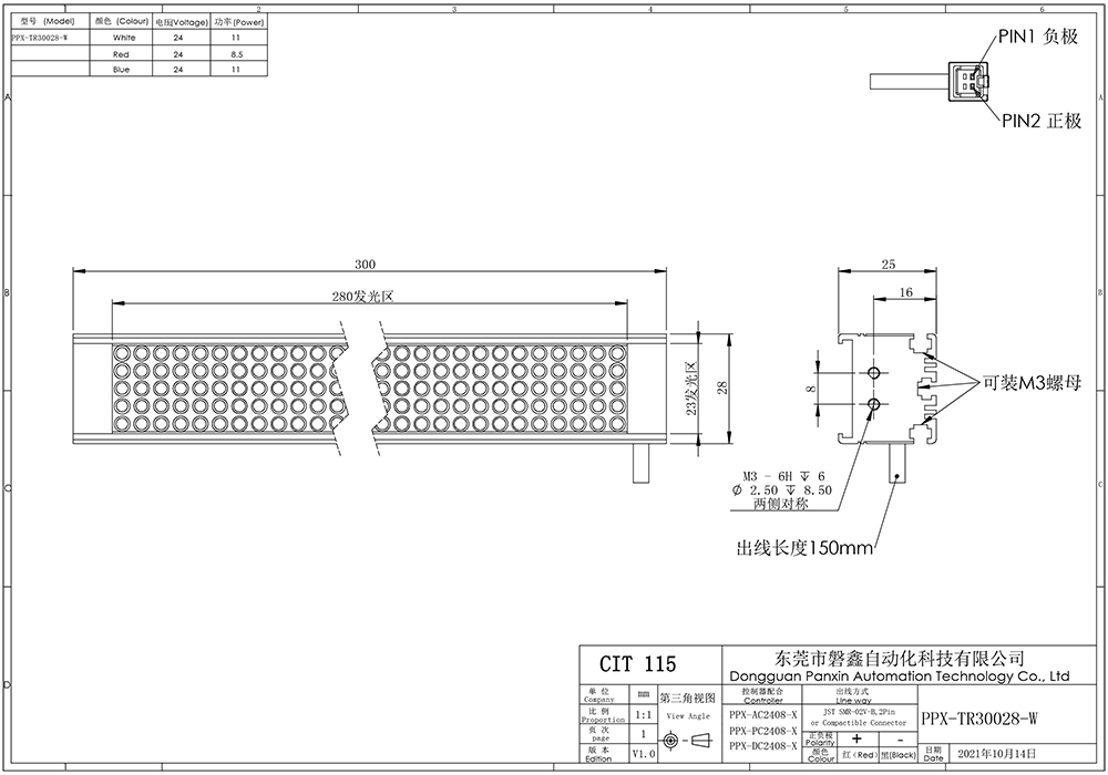 PPX 磐鑫 PPX-TR30028 条形光源 01. 技术指标 02. 选型说明 03. 特殊定制项目 04. 光谱分布 以下皆为实验室数据仅供参考* 手机/微信:18320955412 电话:86 0755 84689265 QQ:2423332841 邮箱:2423332841@qq.com