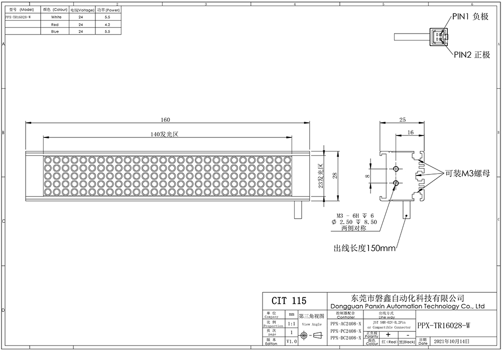 PPX 磐鑫 PPX-TR16028 条形光源 01. 技术指标 02. 选型说明 03. 特殊定制项目 04. 光谱分布 以下皆为实验室数据仅供参考* 手机/微信:18320955412 电话:86 0755 84689265 QQ:2423332841 邮箱:2423332841@qq.com