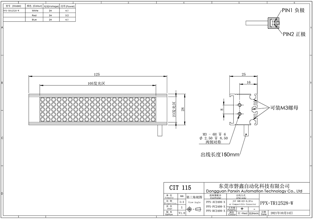 PPX 磐鑫 PPX-TR12528 条形光源 01. 技术指标 02. 选型说明 03. 特殊定制项目 04. 光谱分布 以下皆为实验室数据仅供参考* 手机/微信:18320955412 电话:86 0755 84689265 QQ:2423332841 邮箱:2423332841@qq.com