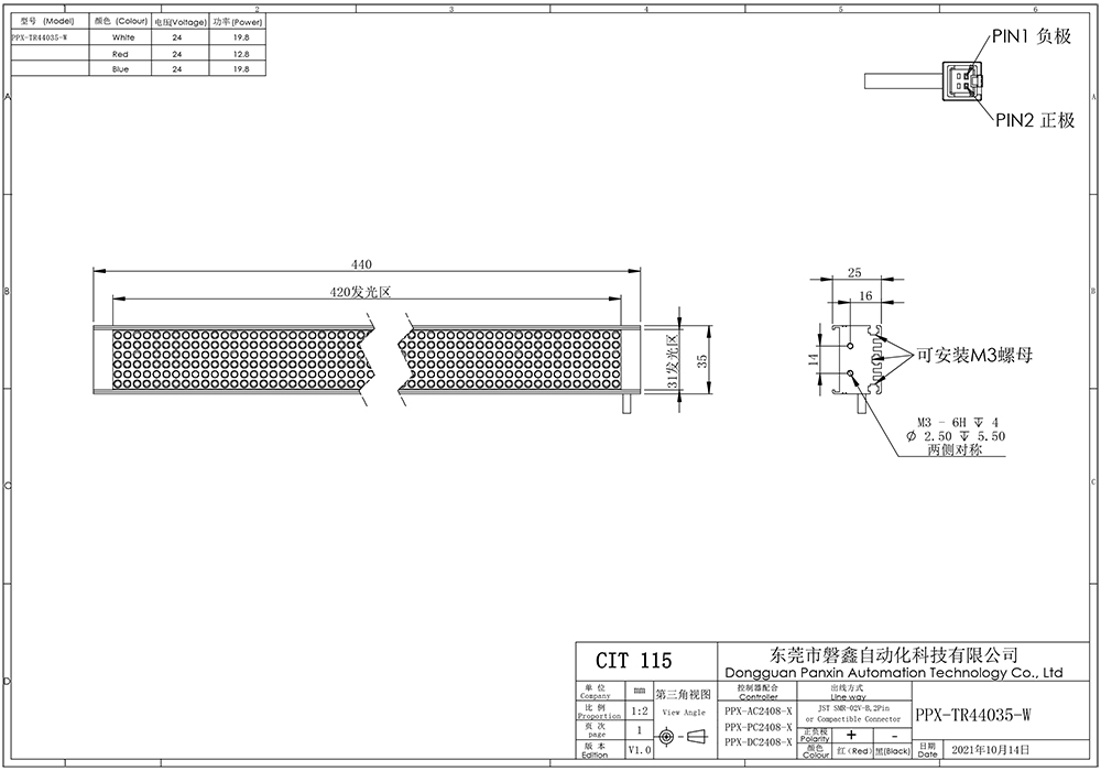 PPX 磐鑫 PPX-TR44035 条形光源 01. 技术指标 02. 选型说明 03. 特殊定制项目 04. 光谱分布 以下皆为实验室数据仅供参考* 手机/微信:18320955412 电话:86 0755 84689265 QQ:2423332841 邮箱:2423332841@qq.com