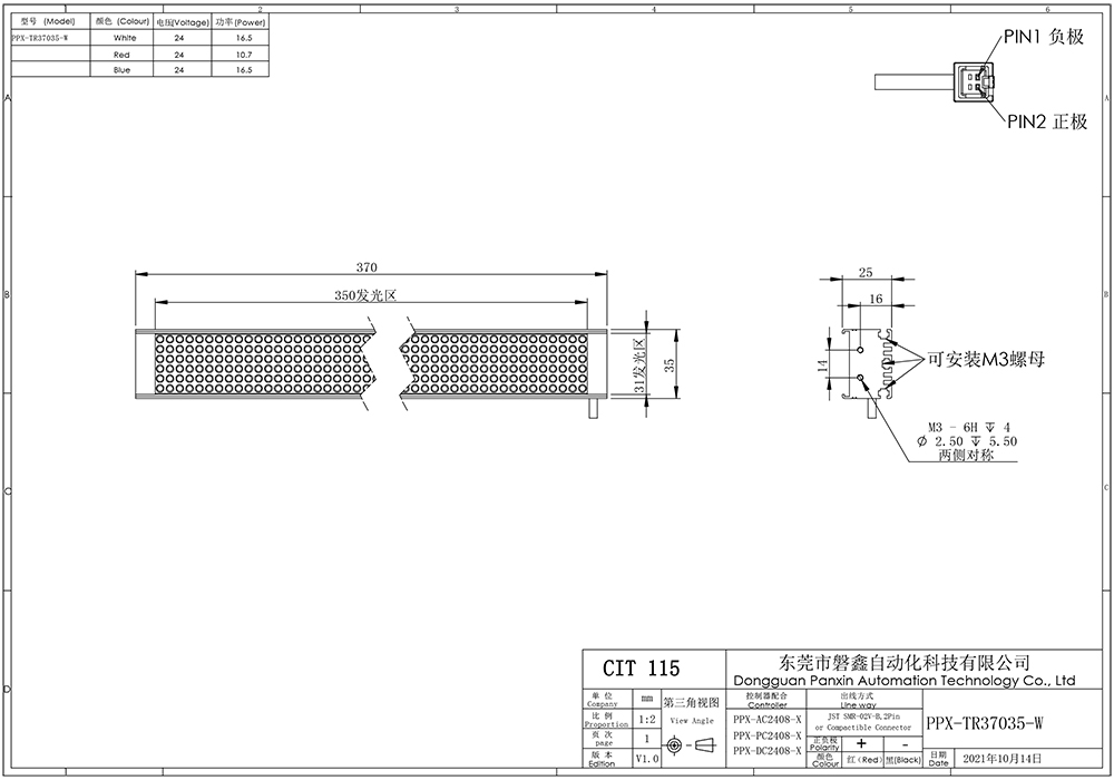 PPX 磐鑫 PPX-TR37035 条形光源 01. 技术指标 02. 选型说明 03. 特殊定制项目 04. 光谱分布 以下皆为实验室数据仅供参考* 手机/微信:18320955412 电话:86 0755 84689265 QQ:2423332841 邮箱:2423332841@qq.com