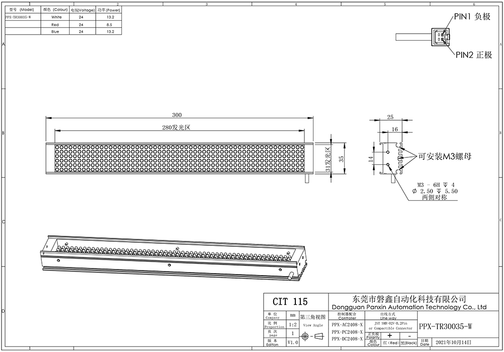 PPX 磐鑫 PPX-TR30035 条形光源 01. 技术指标 02. 选型说明 03. 特殊定制项目 04. 光谱分布 以下皆为实验室数据仅供参考* 手机/微信:18320955412 电话:86 0755 84689265 QQ:2423332841 邮箱:2423332841@qq.com
