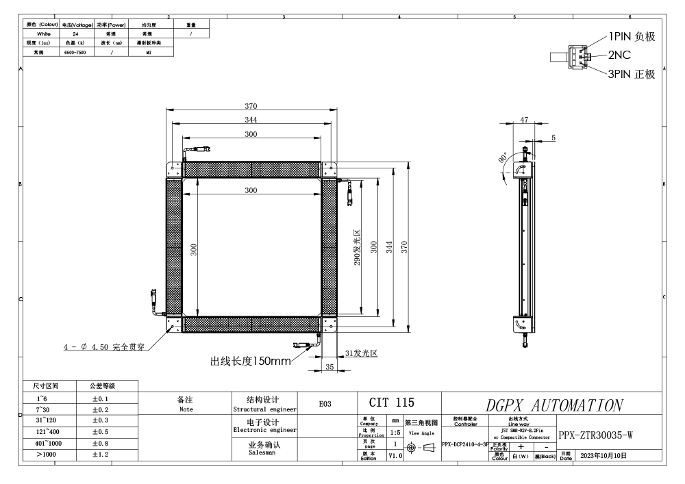 PPX 磐鑫 PPX-ZTR30035 组合条形光源 01. 技术指标 02. 选型说明 03. 特殊定制项目 04. 光谱分布 手机/微信:18320955412 电话:86 0755 84689265 QQ:2423332841 邮箱:2423332841@qq.com