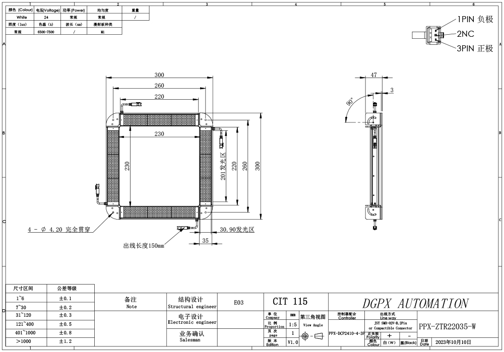 PPX 磐鑫 PPX-ZTR22035 组合条形光源 01. 技术指标 02. 选型说明 03. 特殊定制项目 04. 光谱分布 手机/微信:18320955412 电话:86 0755 84689265 QQ:2423332841 邮箱:2423332841@qq.com