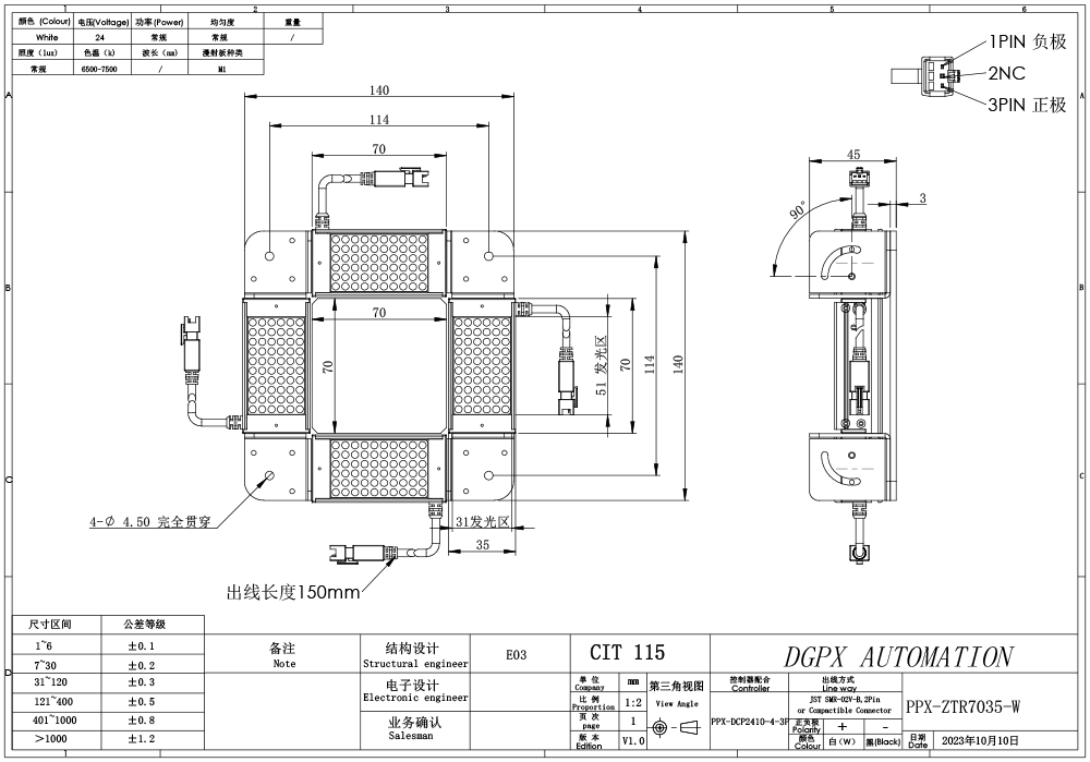 PPX 磐鑫 PPX-ZTR7035 组合条形光源 01. 技术指标 02. 选型说明 03. 特殊定制项目 04. 光谱分布 手机/微信:18320955412 电话:86 0755 84689265 QQ:2423332841 邮箱:2423332841@qq.com