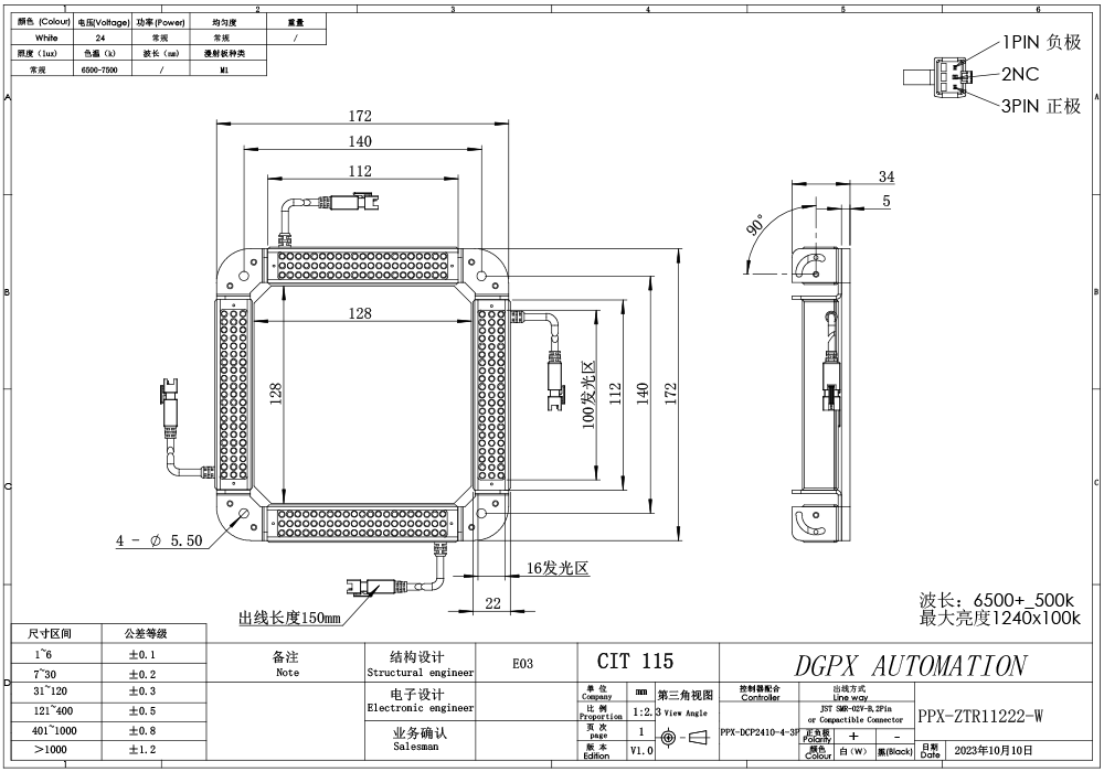 PPX 磐鑫 PPX-ZTR11222 组合条形光源 01. 技术指标 02. 选型说明 03. 特殊定制项目 04. 光谱分布 手机/微信:18320955412 电话:86 0755 84689265 QQ:2423332841 邮箱:2423332841@qq.com