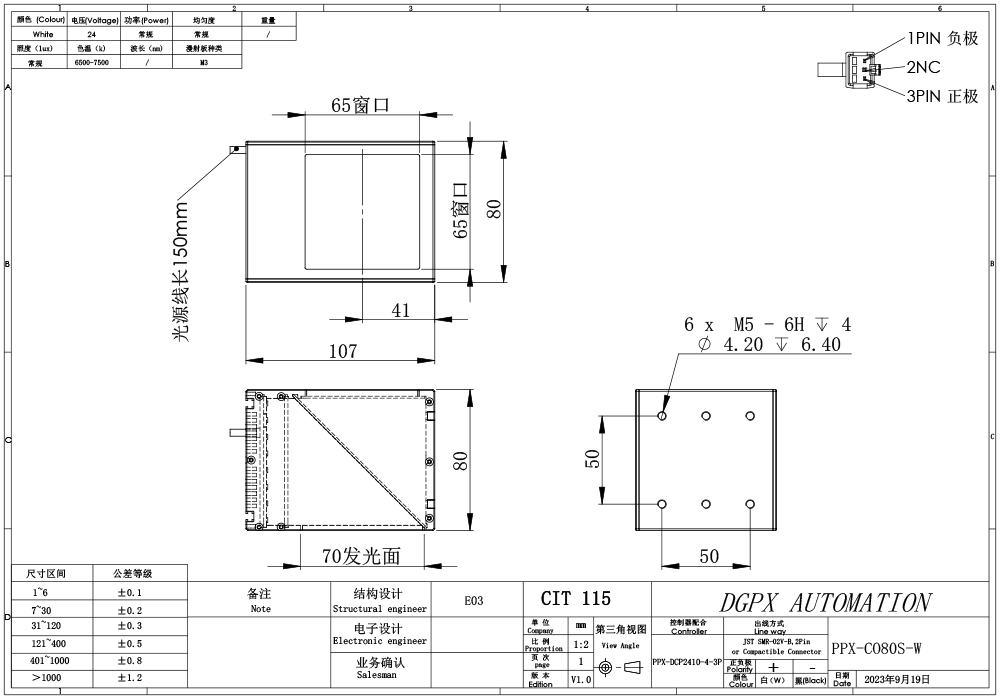 PPX 磐鑫 PPX-CO80S 同轴光源 01. 技术指标 02. 选型说明 03. 特殊定制项目 04. 光谱分布 手机/微信:18320955412 电话:86 0755 84689265 QQ:2423332841 邮箱:2423332841@qq.com
