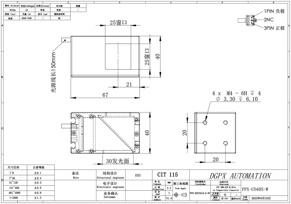 PPX 磐鑫 PPX-CO40S 同轴光源 01. 技术指标 02. 选型说明 03. 特殊定制项目 04. 光谱分布 手机/微信:18320955412 电话:86 0755 84689265 QQ:2423332841 邮箱:2423332841@qq.com