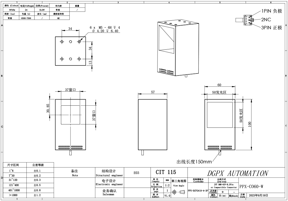 PPX 磐鑫 PPX-CO60 同轴光源 01. 技术指标 02. 选型说明 03. 特殊定制项目 04. 光谱分布 手机/微信:18320955412 电话:86 0755 84689265 QQ:2423332841 邮箱:2423332841@qq.com