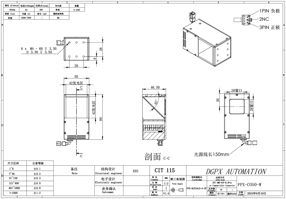 PPX 磐鑫 PPX-CO50 同轴光源 01. 技术指标 02. 选型说明 03. 特殊定制项目 04. 光谱分布 05. 特殊定制 手机/微信:18320955412 电话:86 0755 84689265 QQ:2423332841 邮箱:2423332841@qq.com